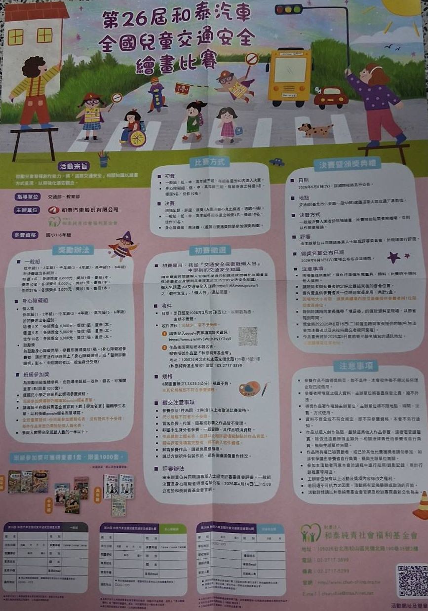 轉知第26屆和泰汽車全國兒童交通安全繪畫比賽